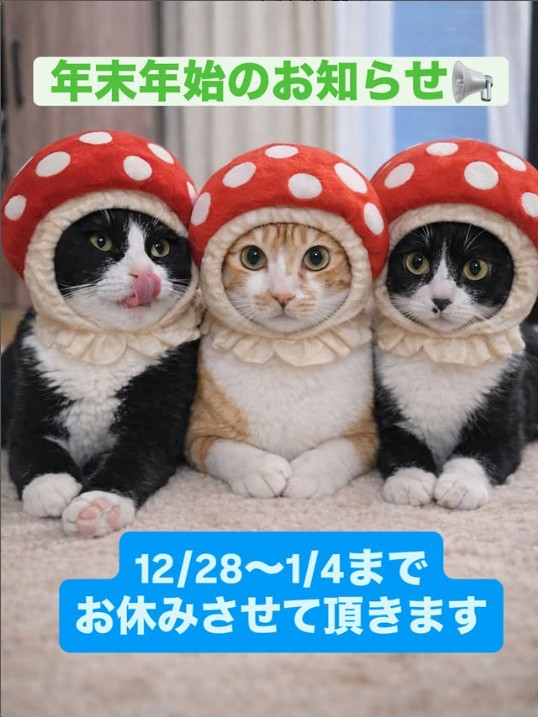さて、弊社は今年の営業は明日までとなりました。今年も色々有りましたが、明日は1年の締めくくりとして大掃除頑張ります。来年は1/5からの営業となりますので、どうぞよろしくお願い致します🙇♀️それでは本日もあと半日ですが、皆様ご安全に!